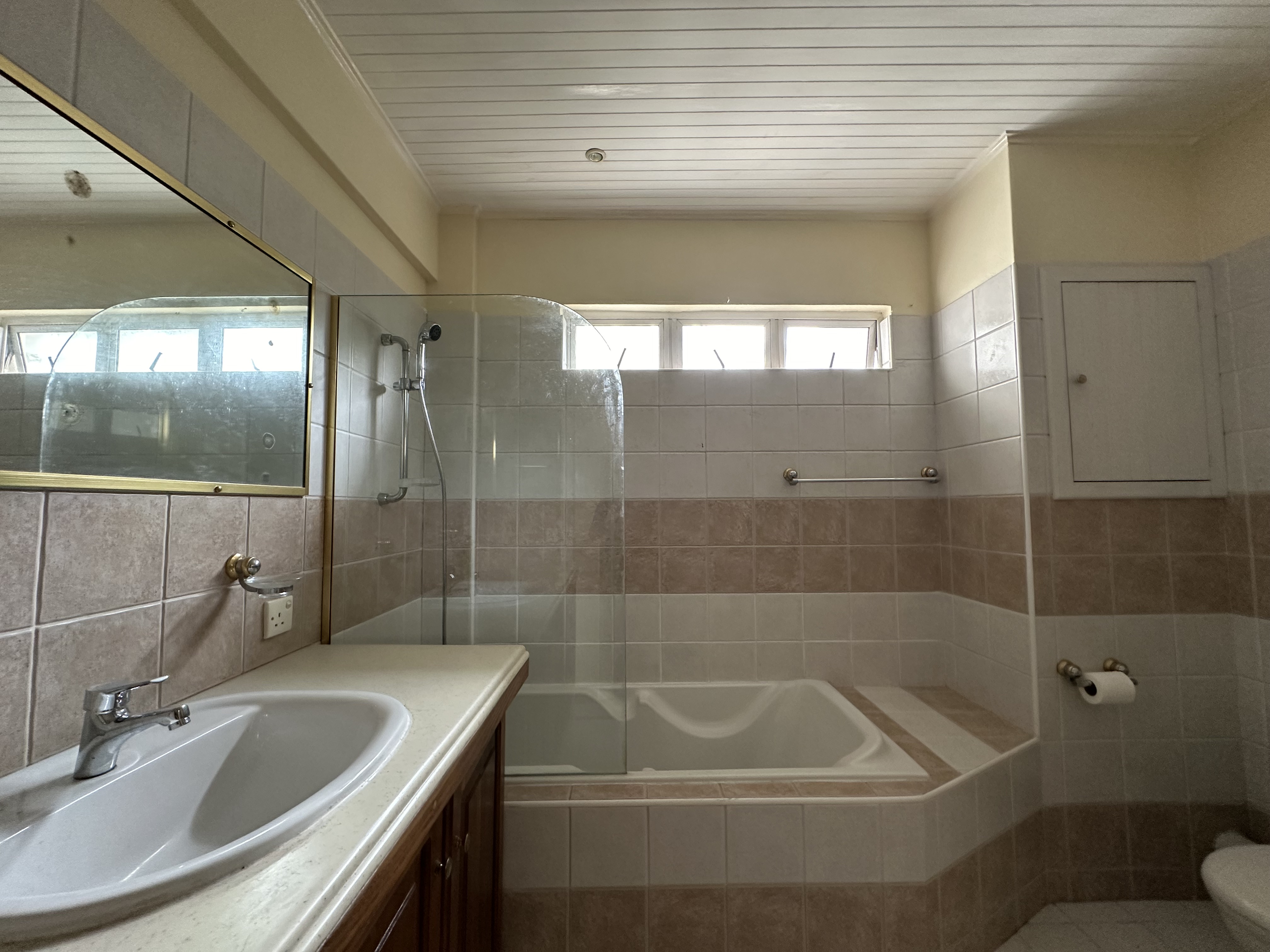 This apartment for rent in Floreal consists of a classic spacious kitchen. A timeless elegance permeates the kitchen, with its sleek countertops and ample cabinet space. The carefully chosen colour palette of warm neutrals. It creates an inviting atmosphere, while offering a degree of functionality. The generous floor plan allows for seamless integration of a cozy breakfast nook. Thus being perfect for enjoying a morning coffee. Whether it’s preparing a gourmet meal or simply enjoying the art of cooking, this kitchen provides the ideal backdrop for culinary inspiration.
