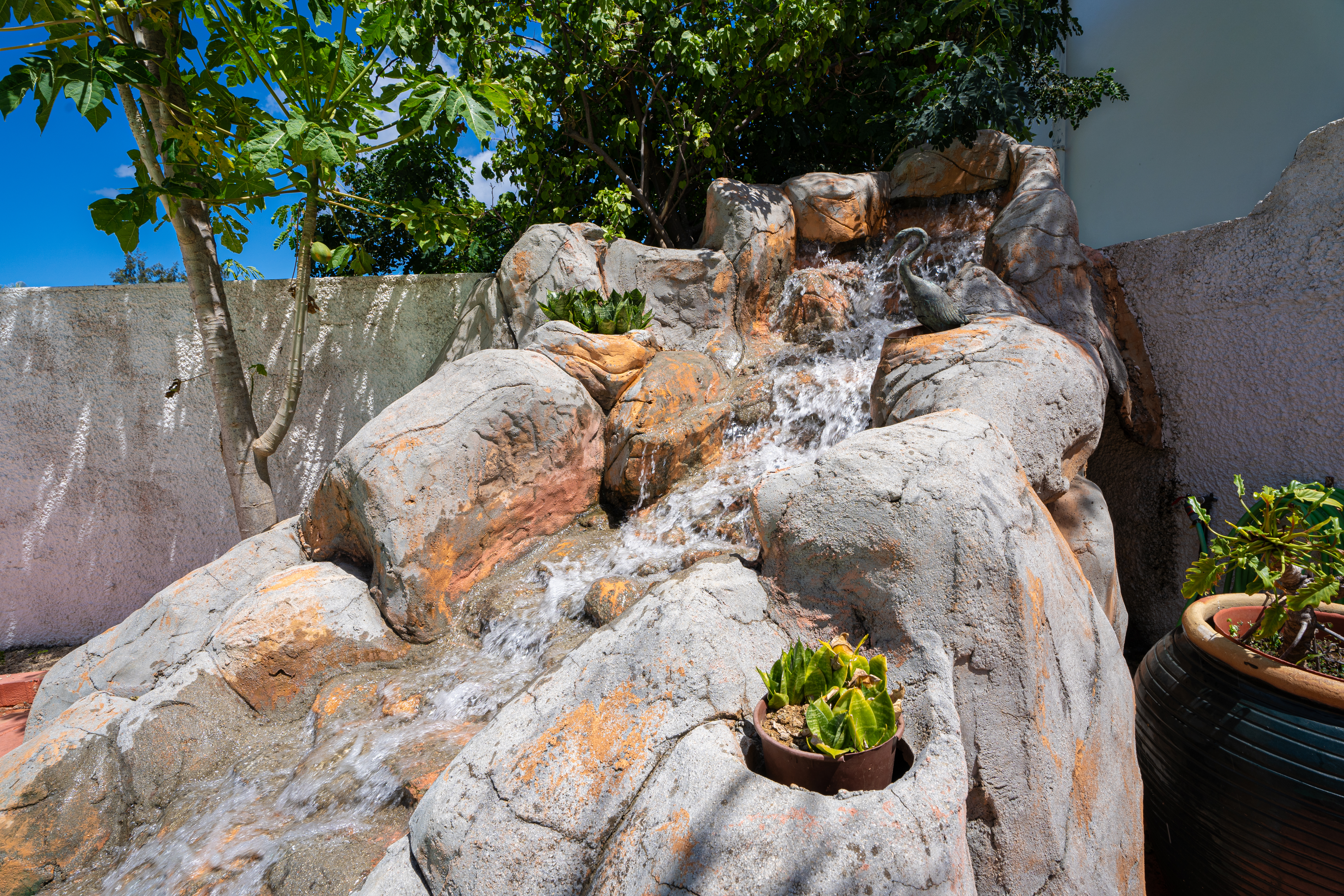 Outside, the magic continues with a wonderfully landscaped yard. It incorporates local greenery that perfectly frames the pool. This pool, the jewel of the property offers an illusion of seamlessness along with its artificial waterfall. Around it, the possibility of adding relaxation areas. Per se it may include a shaded pergola, sun loungers and a stone barbecue area, make the most of Flic-en-Flac’s sunny climate and balmy evenings.